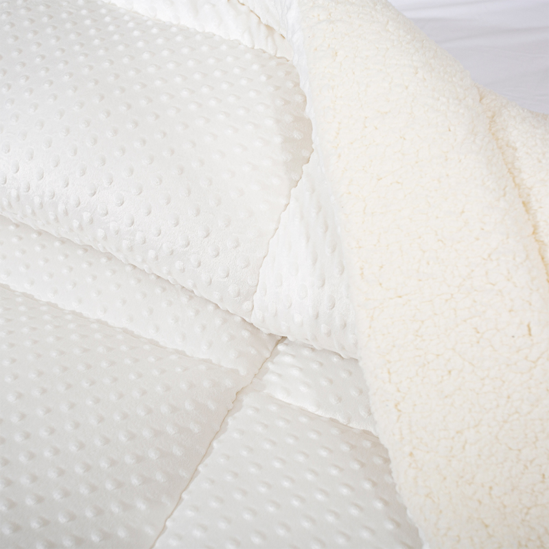 Oboustranné teplé-přikrývky velikosti Queen jsou vyrobeny z oboustranných materiálů, verze minky teček (Texturované fazolové plyšové plyšové) má jemnou a měkkou texturu a hustá chmýří se nevylévá. B-Version Lamb Cashmere tkanina, poprvé pohlcení vlhkosti a prodyšná, vhodná pro spaní nahý, s jemným dotykem a pleťovým teplem.
